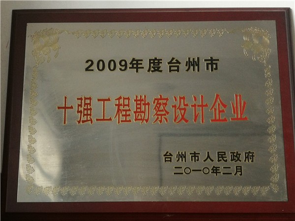 2009年度臺州市十強工程勘察設(shè)計企業(yè)