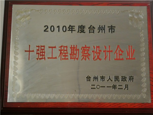 2010年度臺州市十強工程勘察設(shè)計企業(yè)