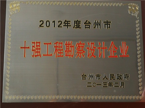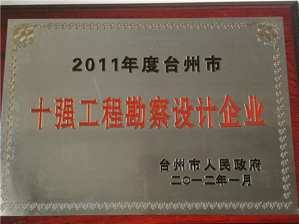 2011年度臺州市十強工程勘察設(shè)計企業(yè)