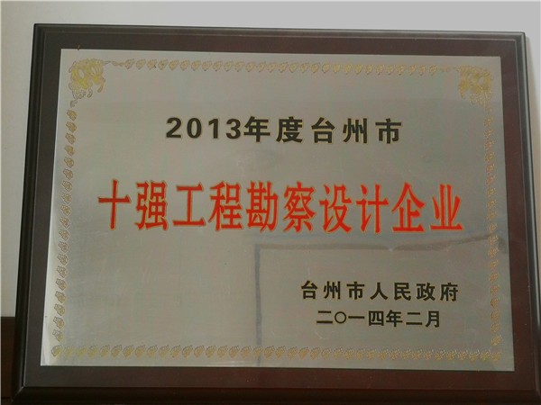 2013年度臺州市十強工程勘察設(shè)計企業(yè)